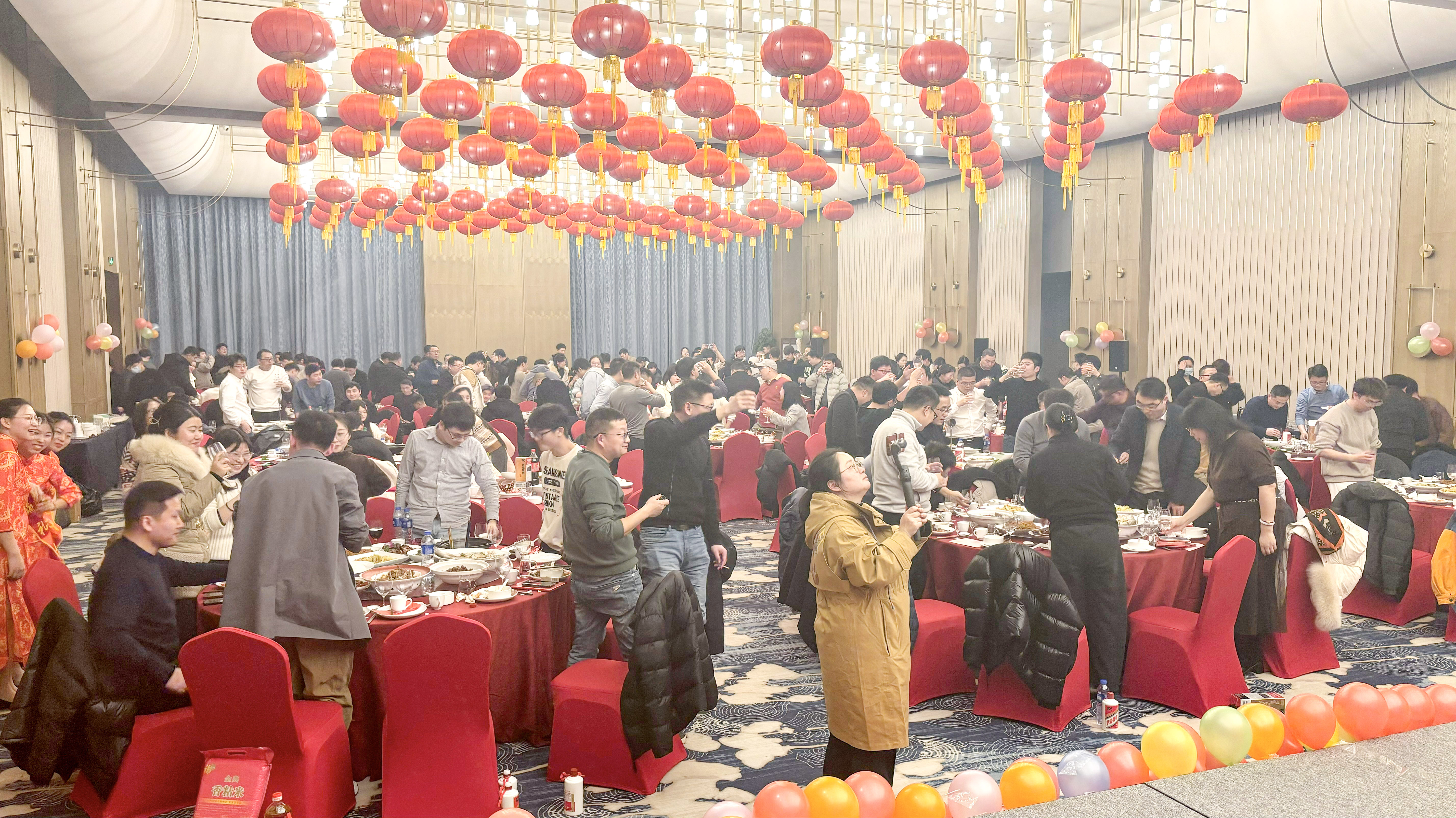 人生得意须尽欢,当歌对酒长精神。随后进入高管祝酒环节。高管们兴致高昂,声彻大厅。职员们集体起立,喜形于色。酒过三巡,人已微醺。一杯一盏,尽皆情谊。